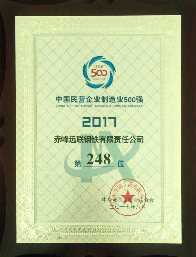 2017年8月,公司被中國工商聯(lián)評為“中國民營企業(yè)500強第431位”